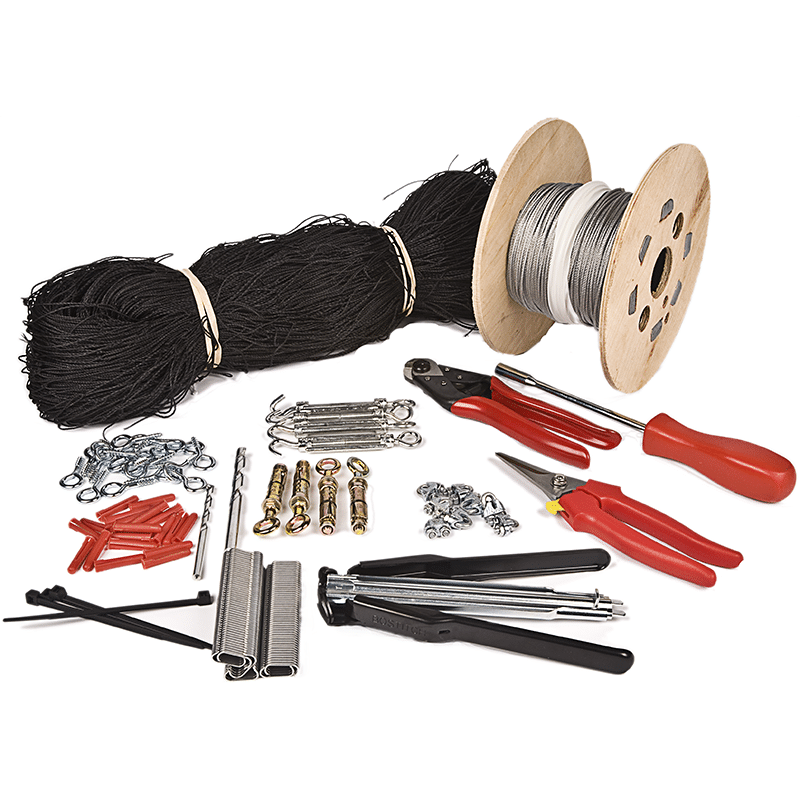 We usually use 50mm pigeon netting which is available in a range of colour options including black, stone and transparent.